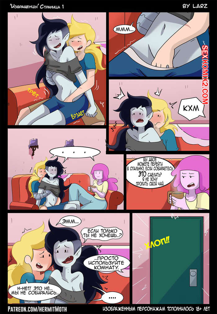 Порно комикс Время приключений. Horny Varmints. Adventure Time Парнишка с девушкой стали ублажать друг друга на диване в гостинной, но их прервала общая подруга, которая предложила им отправиться к себе в комнату. Ребята долго раздумывали, но в итоге пошли в комнату, где стали хорошенько трахаться.